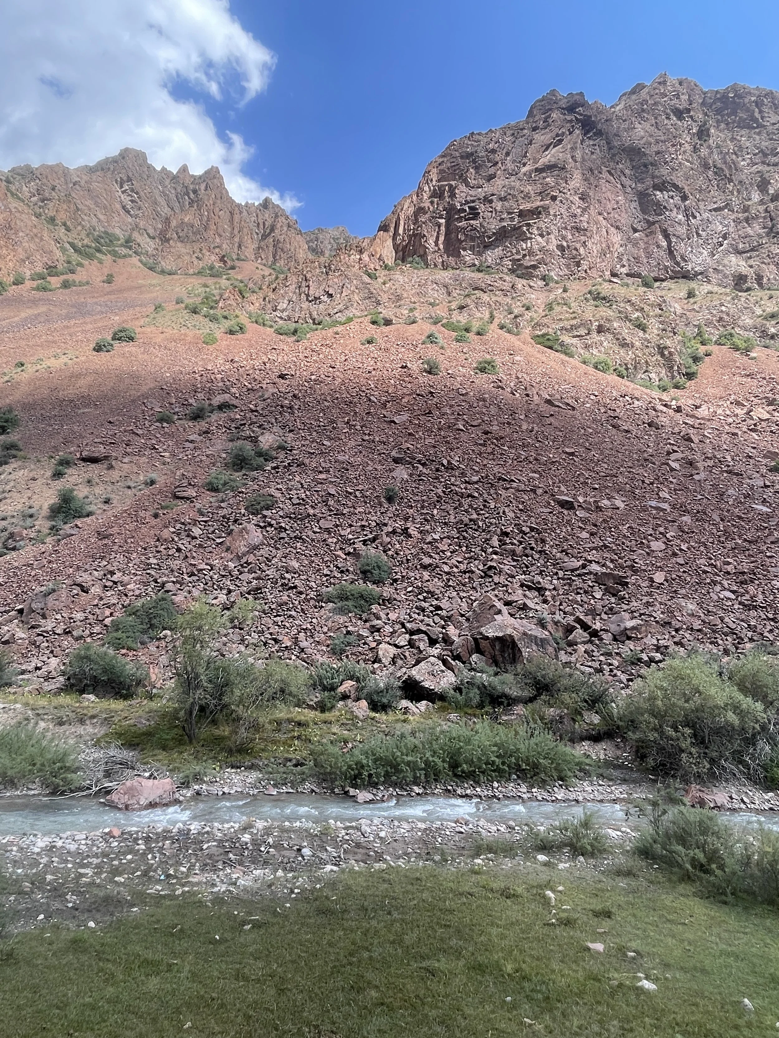 We woke in Kyzyl Os and were treated to another great breakfast, this time fried eggs, crepes, fratata, grapes, local donuts the most delicious local honey, all grainy and creamy. The food on this trip has been very good, beyond my expectations and a real highlight. To that point, I’m not sure what I was expecting, I guess stodgier fare, more stews and potatoes, an altogether starchier affair - but there’s been loads of fresh fruit, fantastic bread, natural yogurt, nuts - yes, happy to be able to say that this place has some great food.