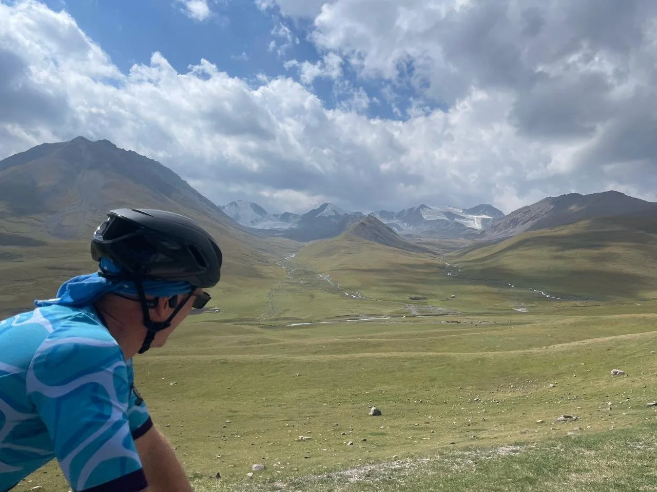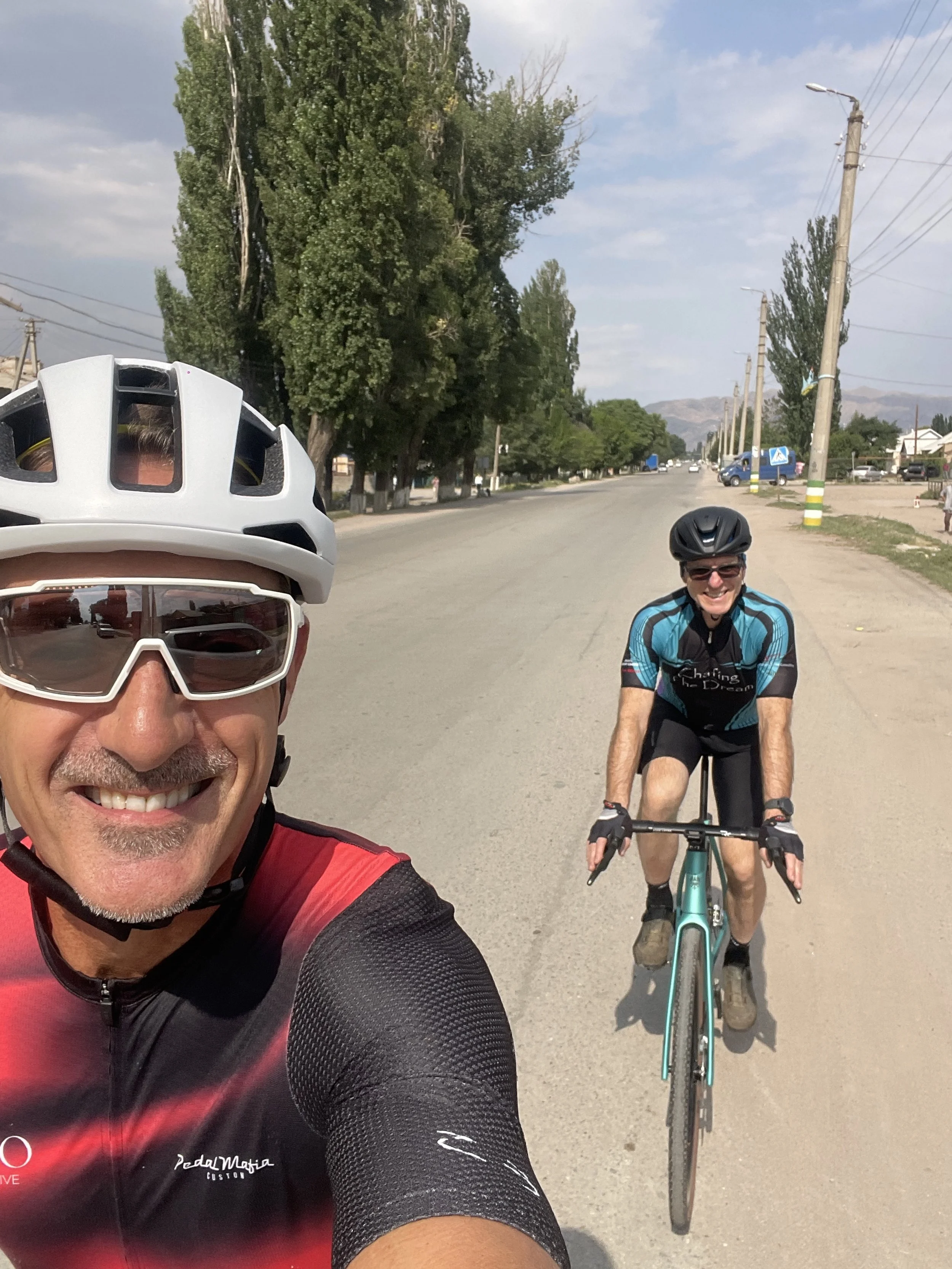 With us are Taala, our driver, Dmitry, our ground operator, and Alex, our on-bike guide. Taala is Kyrgyz, Alex and Dmitry both Russian.