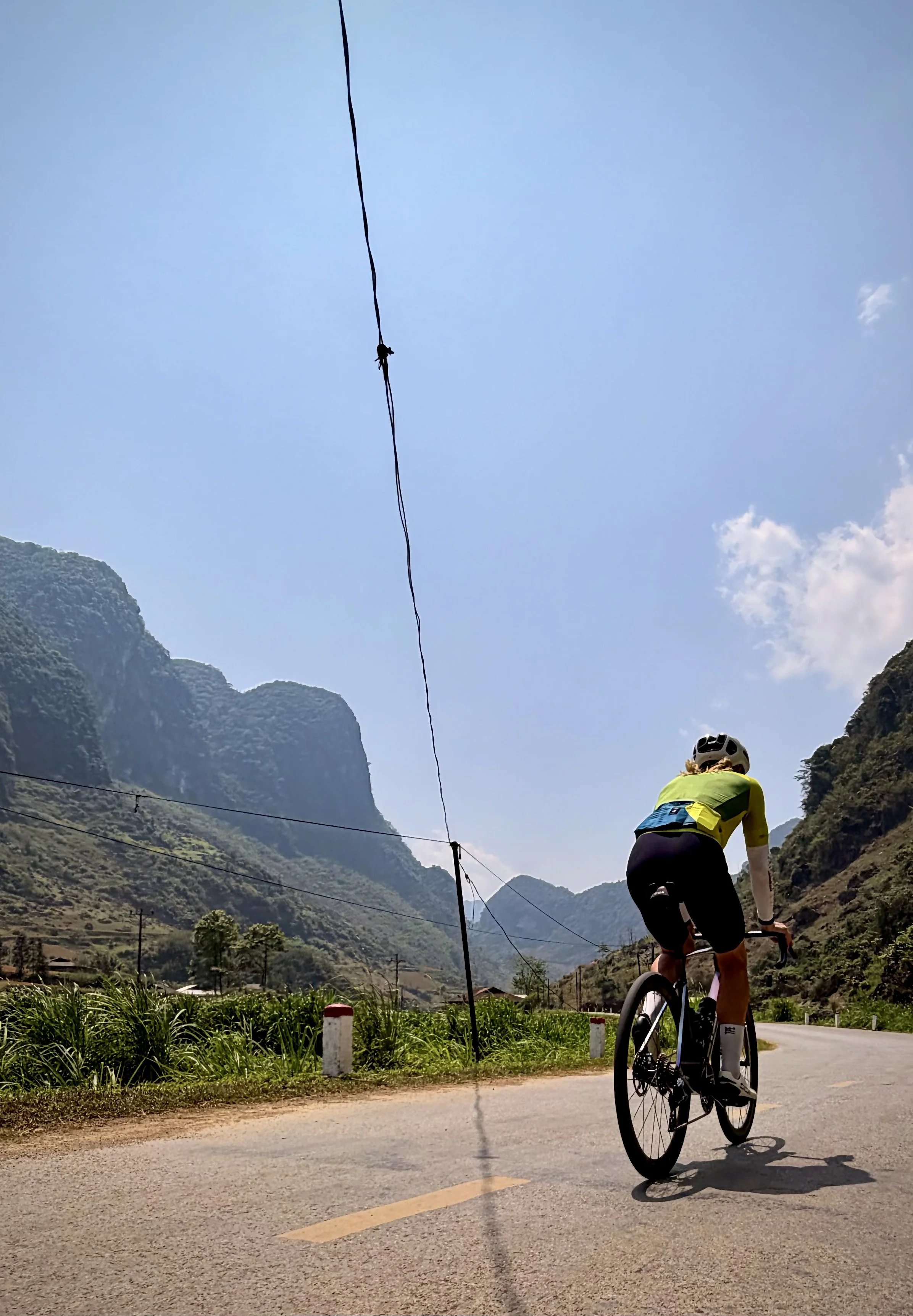 There were more climbs to come, because well of course there were - this is northern Vietnam after all. But then came another gift: a 15km descent, flowing down the side of the mountains with views stretching on forever. You could see every bend in the road and not a single vehicle in the distance, every corner just beckoning you to take the sweetest line.